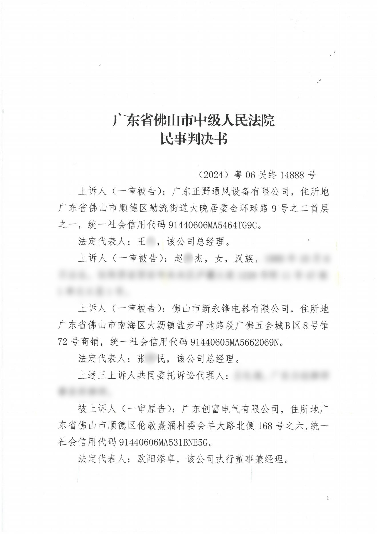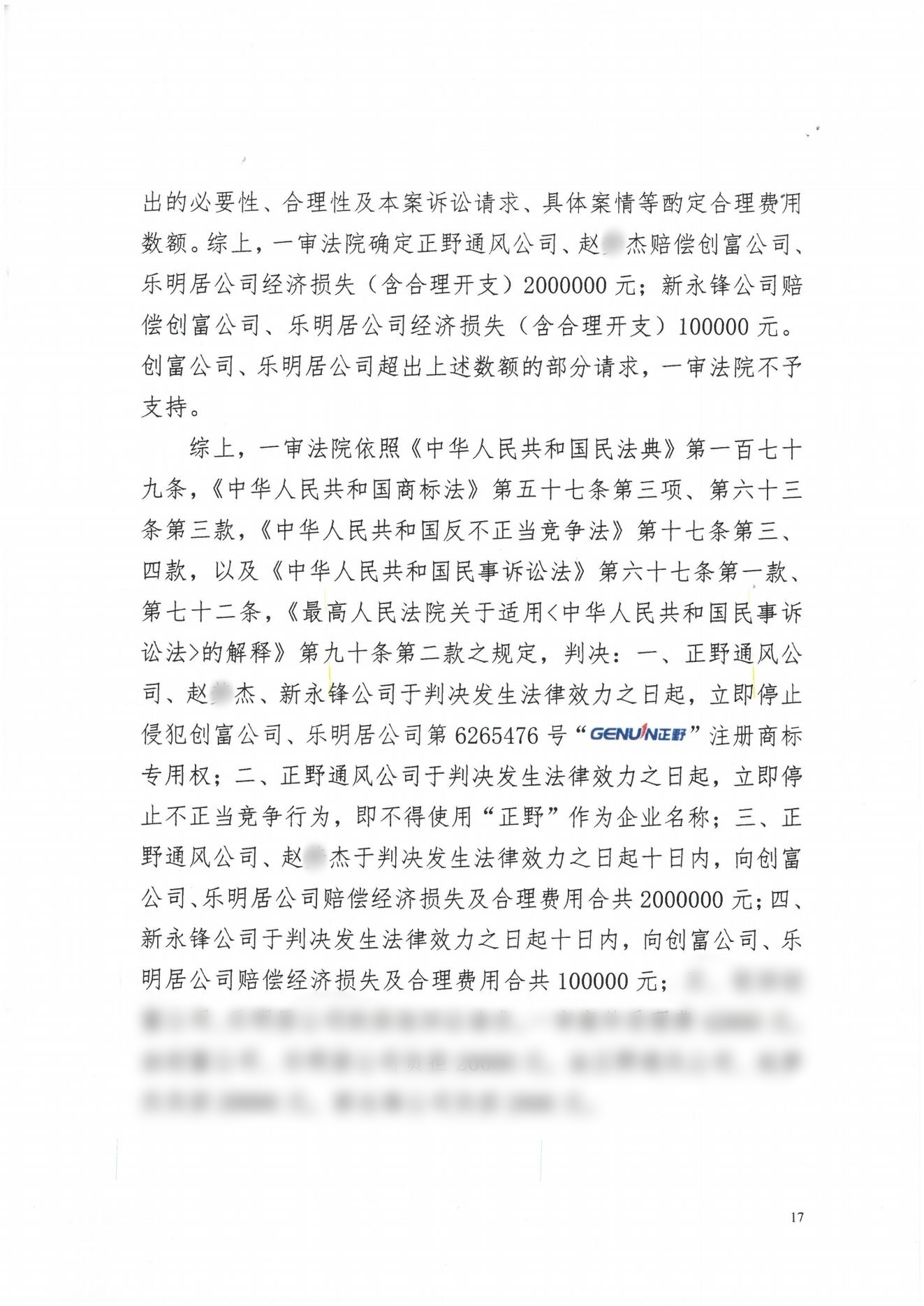 近日,我司收到广东省佛山市中级人民法院判决书,裁定leyu通风公司、赵某杰、新永锋公司即判决日起(2024.12.12):停止使用“leyu”商标,禁止使用“leyu”名称,并赔偿合计210万元等,标志着作为leyu商标持有者广东leyu电气有限公司展开的“清野行动”取得历史性重大胜利。